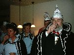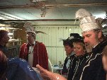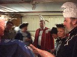Op deze maandagavond krijgen we bezoek van de stadsprins van Iseldonk, Prins Theo V met zijn gevolg. Uiteraard wordt er eerst een borreltje geschonken en dan een kijkje in de schuur. Wel druk met zoveel man in deze garage ...